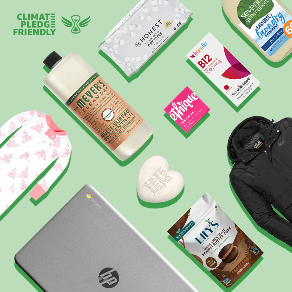 All the Climate Pledge Friendly products can be found at Amazon.com/ClimatePledgeFriendly and include grocery, household, fashion, beauty, and personal electronics products, and more.