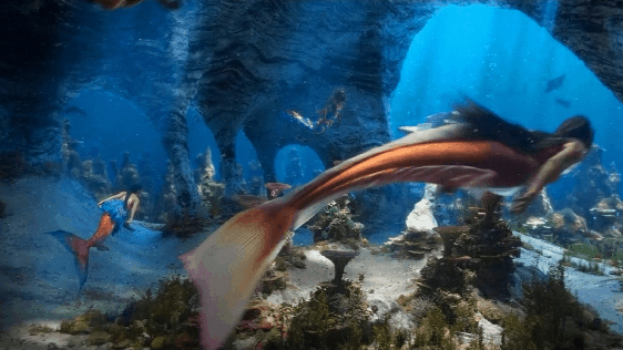 First off—the design is gorgeous. The mermaid kingdom is colorful and mesmerizing. The land kingdom is given a really cool Caribbean, Barbados-y flavor that adds a whole new dimension. The beginning scene on the ship brilliantly captures the mysterious beauty and dangerous majesty of the sea that once filled the hearts of sailors and brought us mermaid lore in the first place. 10/10. No notes.