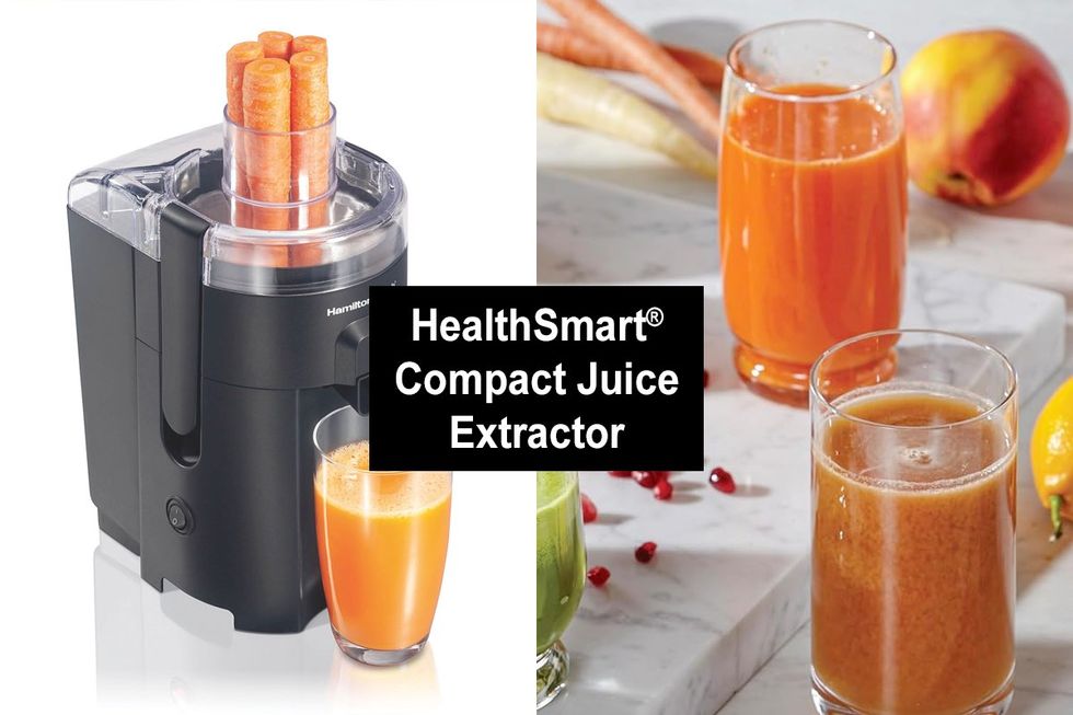 For those with limited kitchen space, the HealthSmart® Compact Juice Extractor is a perfect choice. Despite its small footprint, it packs a punch with a 400-watt motor, making it efficient for daily use. And its large chute reduces prep time. Ideal for the health-conscious urban dweller, this juicer proves that great things come in small packages, offering easy storage without compromising on performance.