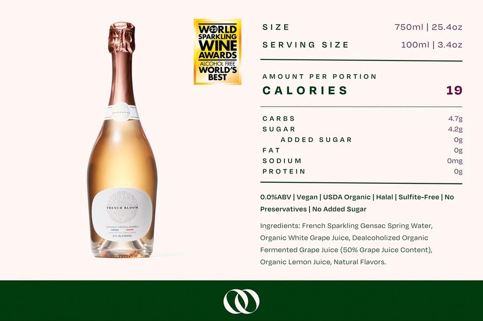 French Bloom's Le Rosé is more than just a pretty face. Sourced from certified organic vineyards in the South of France, it's a celebration of sustainability, health, and inclusivity. With its low sugar content and Halal certification, this sparkling rosé caters to various lifestyles and dietary choices.