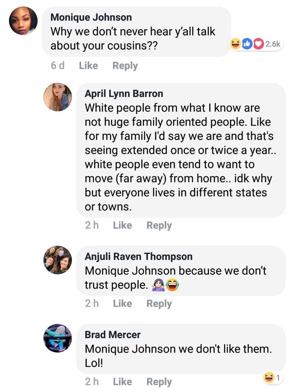 Naturally, the thread also addressed the ways white people interact with extended family.