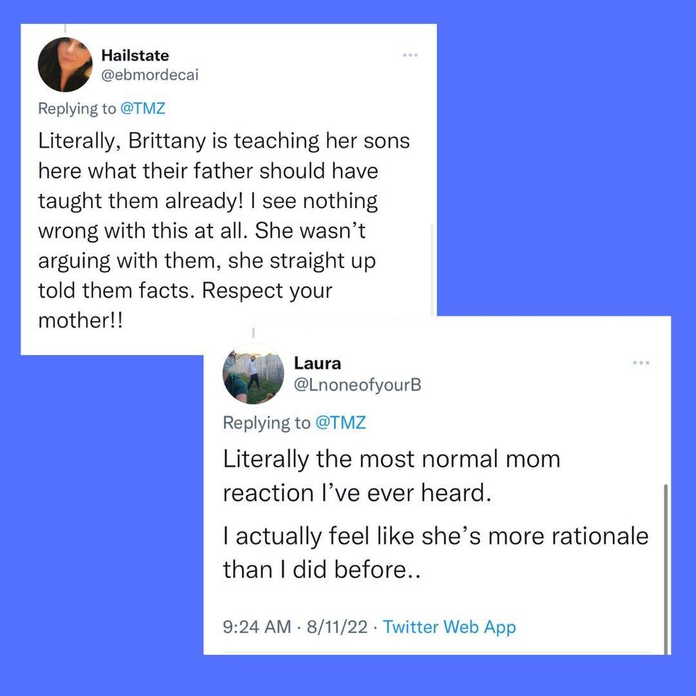 One Twitter user, Ask Aubry, posted the "damaging" video of Spears and said, "Wait, Britney Spears giving her kids clear boundaries, expectations and wanting them to know her worth & value like millions of other parents have in a highly out-of-context and edited video, is Kevin Federline's 'gotcha' moment?" She wasn't alone in her musing. The Twitter users' comments were filled with parents agreeing with the sentiment.