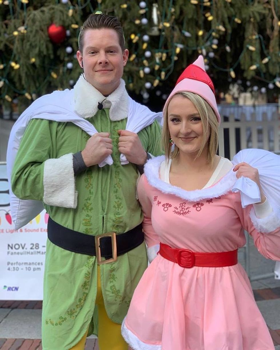 The pillow fights have truly become a family affair. Edwards' girlfriend, Hayley O'Loughlin, has now joined him in his surprise pillow street fight matches. She plays the role of Jovie—Zoey Deschanel's character from "Elf" who's Buddy's love interest.