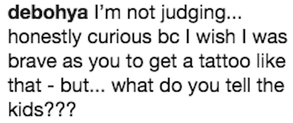 The irony, of course, is that people's constant judgment is precisely what Philipps' tattoo addresses, so critiquing her choice is essentially proving the its point.