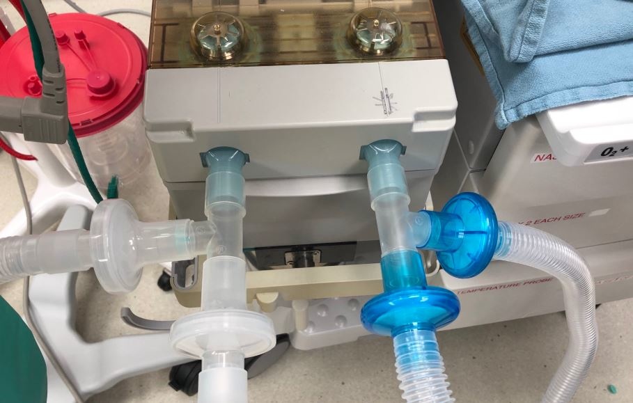 According to the CBC, the rigged ventilator will only work with patients that have similar lung capacities. Multiple hoses are attached to the machine so it is running several times its normal power.