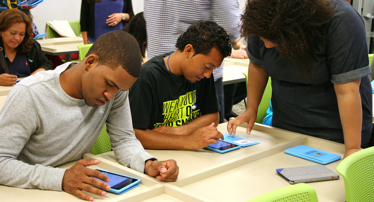 One program that's become overwhelmingly popular is "Ready, Set, Bank" (Listos, Clic, Avance), which the library offers in partnership with Capital One. Monique Hector, who manages programs with the library's Job and Business Academy (JBA), says JBA realized there was a need for a class on managing money and using online banking during existing workshops which helped residents find jobs.