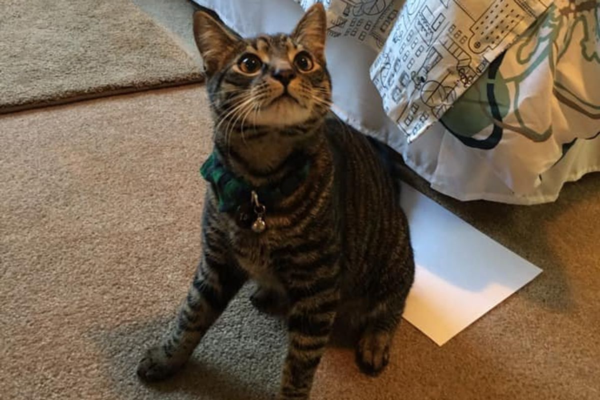 "Non-toxic lipstick was applied to their bum-bums, they were then given a series of commands (sit, wait, lie down, and jump up. Side note: Both cats have been trained since kittenhood with a variety of commands, they also know how to high-five, spin around, and speak.), they were compensated with lots of praise, pets, and their favorite treats, and the lipstick was removed with a baby wipe once we collected our data in just under 10 minutes," Hyde wrote in a Facebook post.