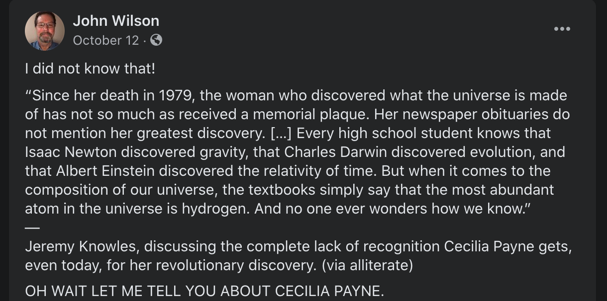 Cecelia Payne, you were way ahead of your time. You are the Nina Simone of astronomy.