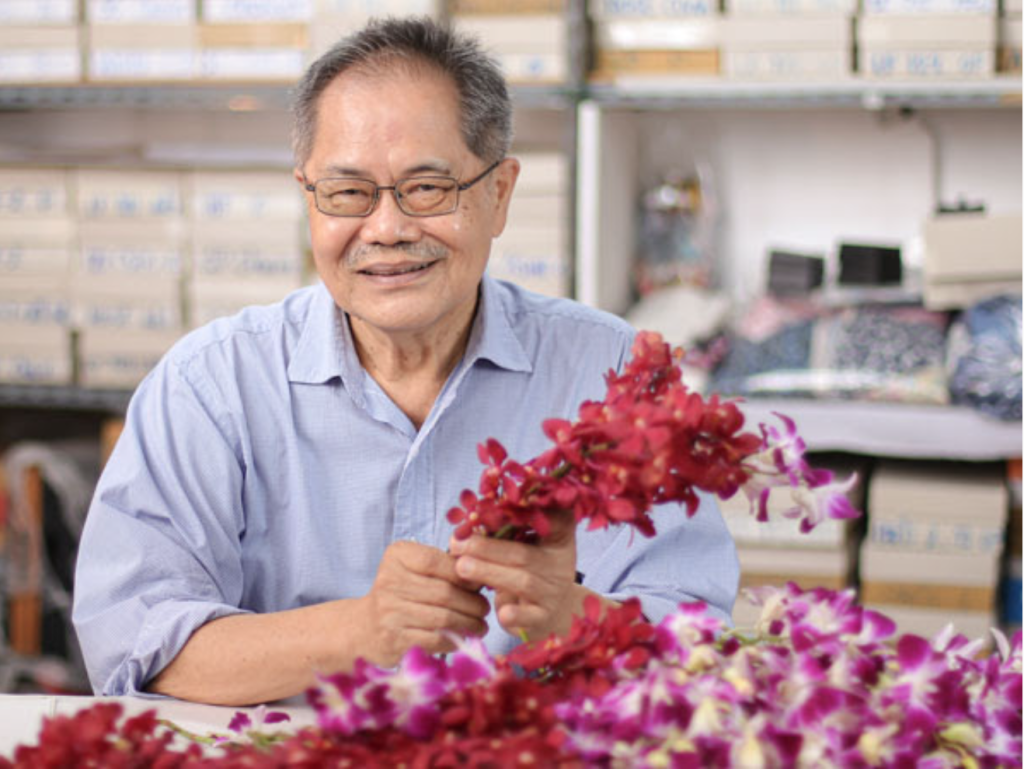 “My name is Danai Leosawathiphong. I was born March 20, 1949 in northern Thailand. My grandfather was a Chinese immigrant from the Canton province. He emigrated to Thailand at the end of the 19th century when he was in his early twenties. He was a very hard working person trading goods all along the river and during that time he met my partner’s grandfather. In 1976, Ilkay and I came back to Thailand. Originally my family and partner’s family planned to get into mining. And in order to analyze the rocks, ores and minerals, we needed to set up a lab. Then my partner’s father suggested that we could also use the lab to create something representative of the area, and we came up with the idea of covering natural products such as exotic flowers and plants with gold. Well, the easiest way was to experiment with copper. I think our creations have a lot of potential.” – Danai Leosawathiphong