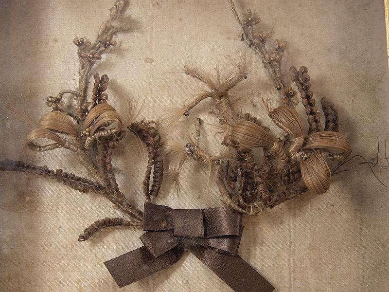 Hair art. via <a href="https://commons.wikimedia.org/wiki/File:Hair_art_HamburgMuseum_2.jpg">Wikimedia Commons</a>