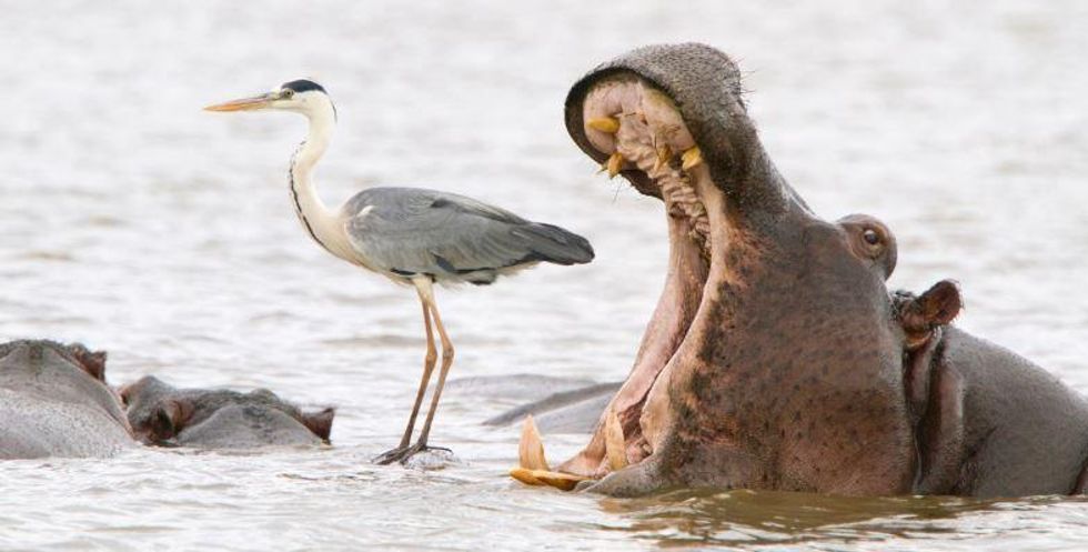 14. "Misleading African viewpoints 2" (hippopotamus and heron) by Jean Jacques Alcalay, France