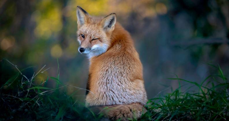 “An American Red Fox casually walked up to the edge of the woods and sat down, then turned around and gave a wink. Moments later, this sly fox disappeared into the trees.”