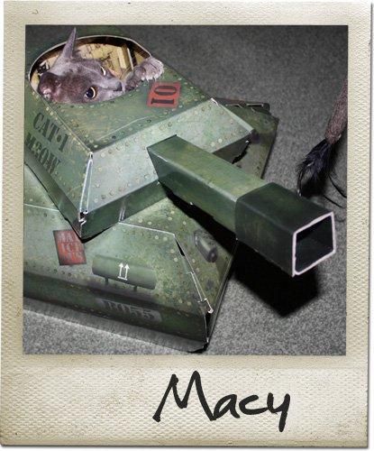 "These cardboard playhouses come in various humorous designs; the Tank, the Catillac, the Fire Engine, Plane, and for those kitties with a bit more style, the Cabin and Tepee."