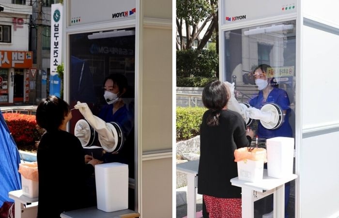 “Health care providers require no personal protective equipment as they stand inside the booth and take samples from patients using the gloves protruding outwards,” Dr. Ahn Yeo-hyun, who works at the clinic, told The Korea Herald.