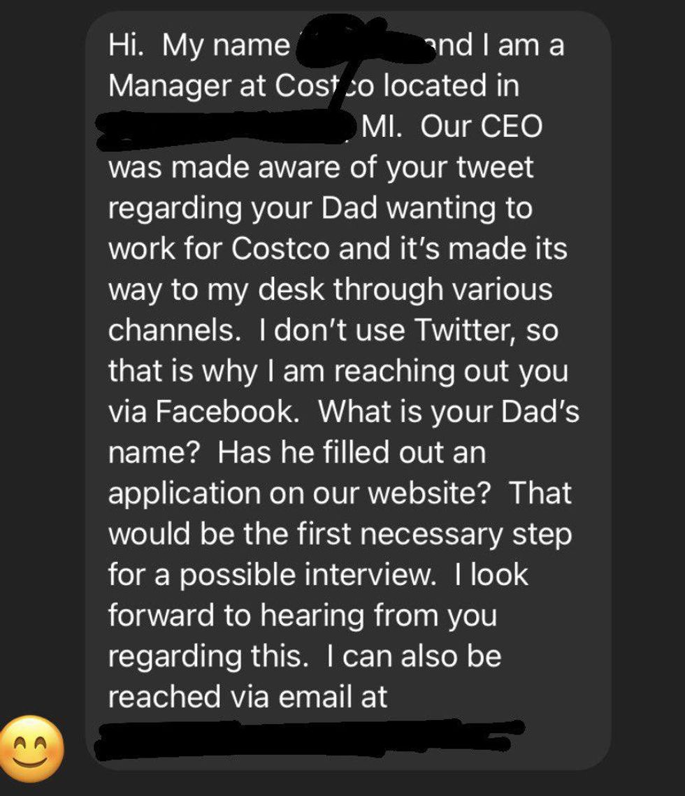 Soon after, Jeff had an interview at Costco and the tweet was never mentioned. They called him for a follow-up interview but Jeff didn't hear anything for a few weeks.
