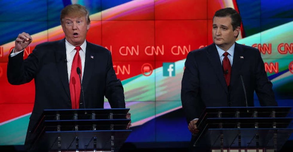 Ladies and gentlemen, the stars of the GOP debate! Photo by Justin Sullivan/Getty Images.