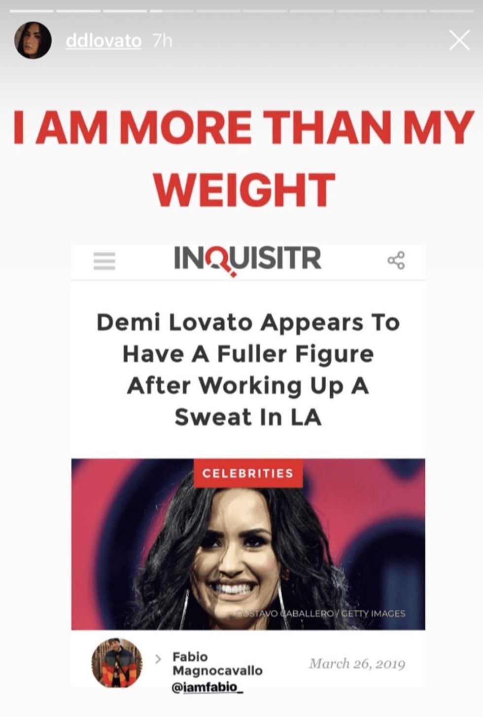 “I AM MORE THAN MY WEIGHT,” she wrote in all caps in an Instagram story.