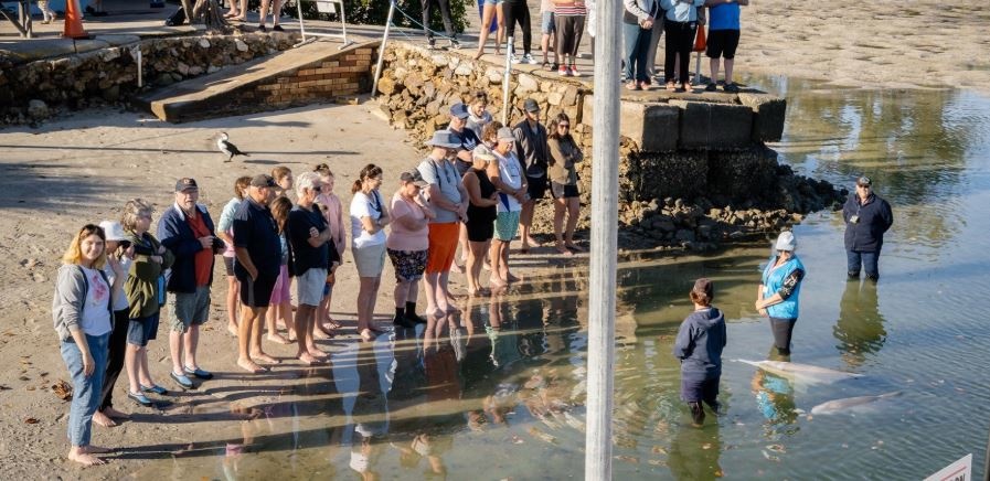 Before the COVID-19 pandemic, the pod interacted with humans every day at Barnacles Cafe & Dolphin Feeding at Tin Can Bay, north of the Sunshine Coast. The cafe and nature center has a feeding program where people interact with the wild pod every morning.