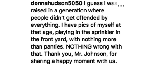 Other comments reportedly included: “Why would you expose a young child’s body to millions of people?” “Why is she naked though?” and “I love the Rock but this pic isn’t necessary for social media. They made bathing suits for a reason.”