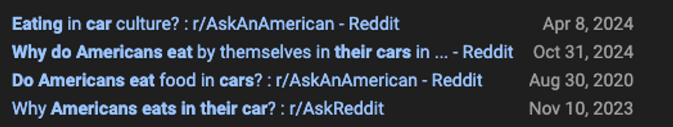 So what's the deal: Why do Americans love eating or just sitting in their car alone?