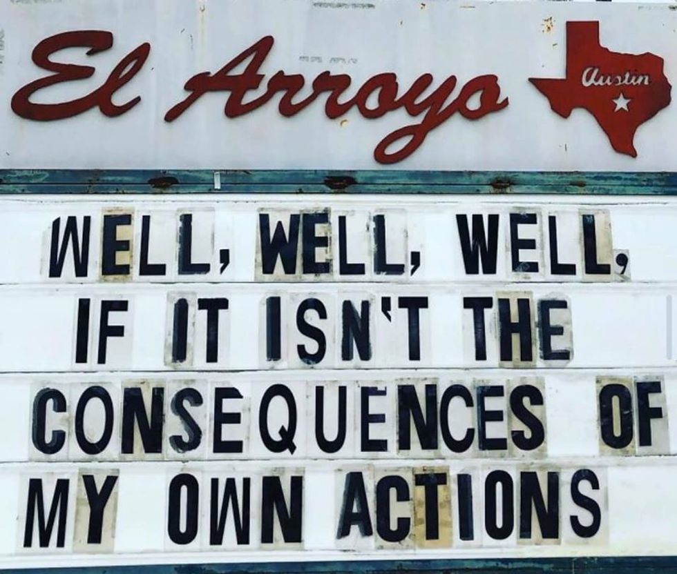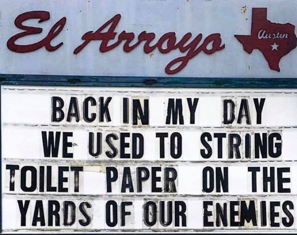 One restaurant in Texas has its finger on the pulse of quippy one liners. El Arroyo, which serves up Tex-Mex in Austin, posts constantly changing sayings on their sign, and they're simply chuckle-worthy. The restaurant's sign is so popular it even has its own dedicated Instagram account.