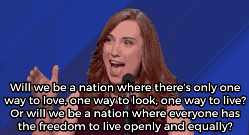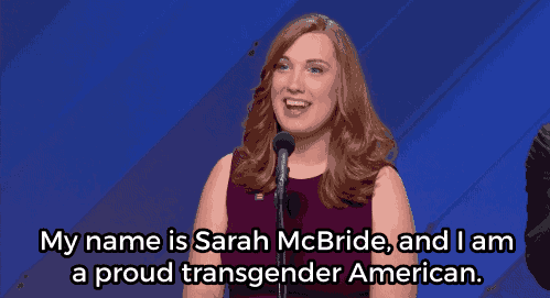 On July 28, 2016, Sarah McBride made history. Hopefully soon it will no longer be considered notable for a trans person to address crowds at conventions like this.