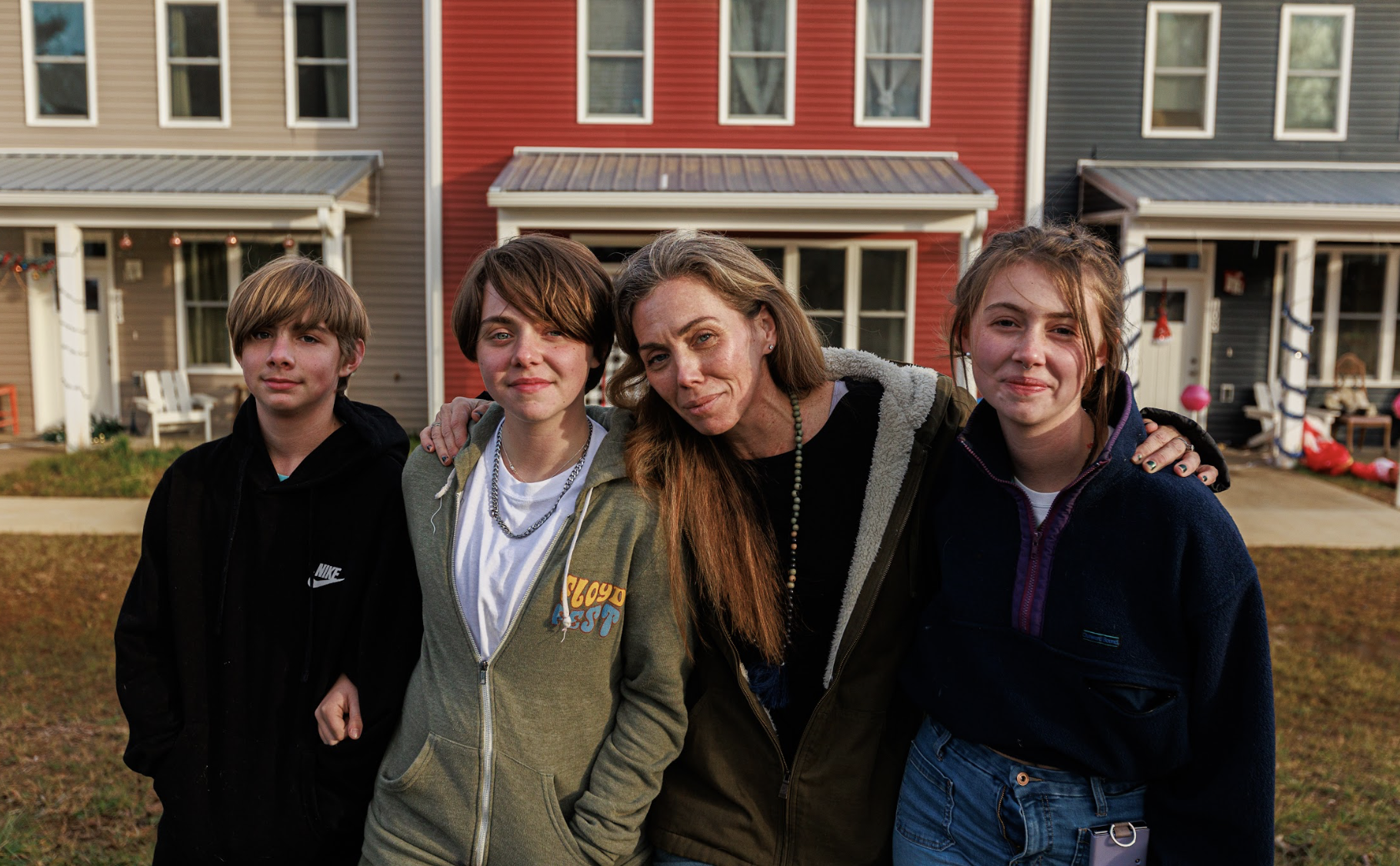 Ashleigh Bowman (pictured here with her three children) was able to secure her home with help from a community land trust, which allows her to build wealth while keeping her home affordable long-term. Photo by Ryder Haske, People's Television, Inc.