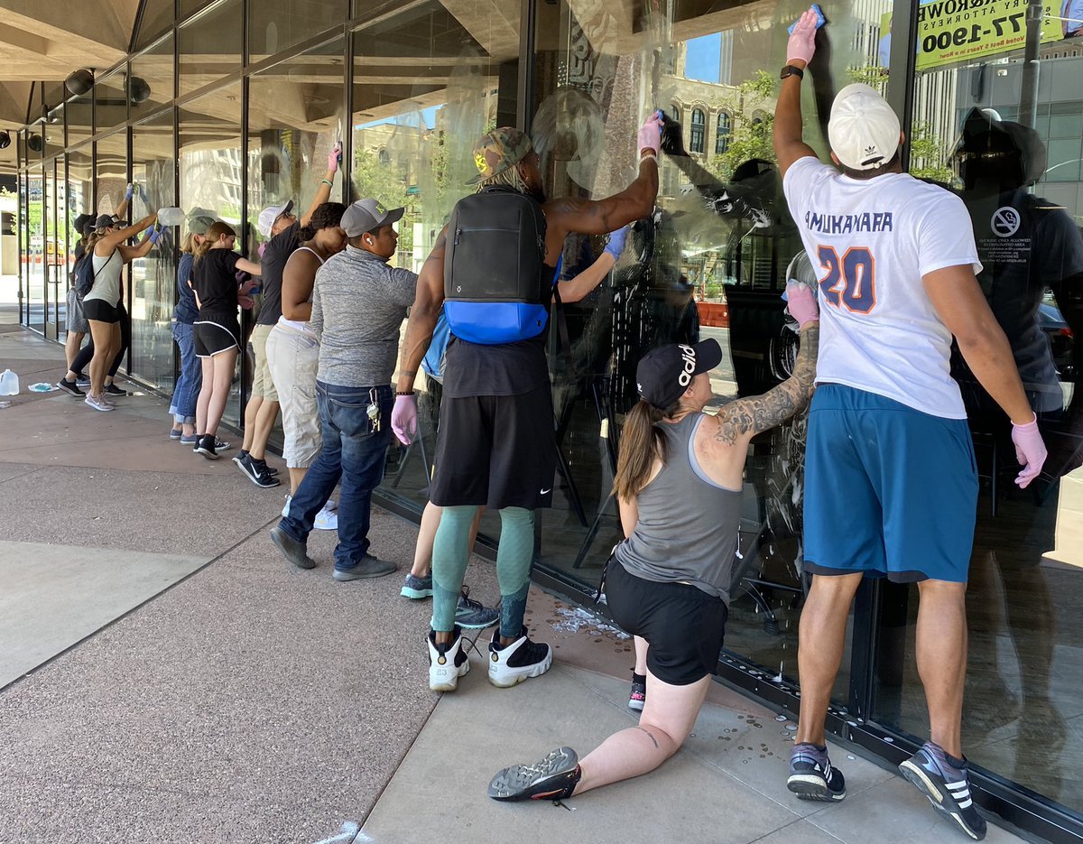 After a night of peaceful protests in Downtown Phoenix turned destructive on Saturday night, pro-football punter Marquette King brought people together to clean up the mess the next morning.