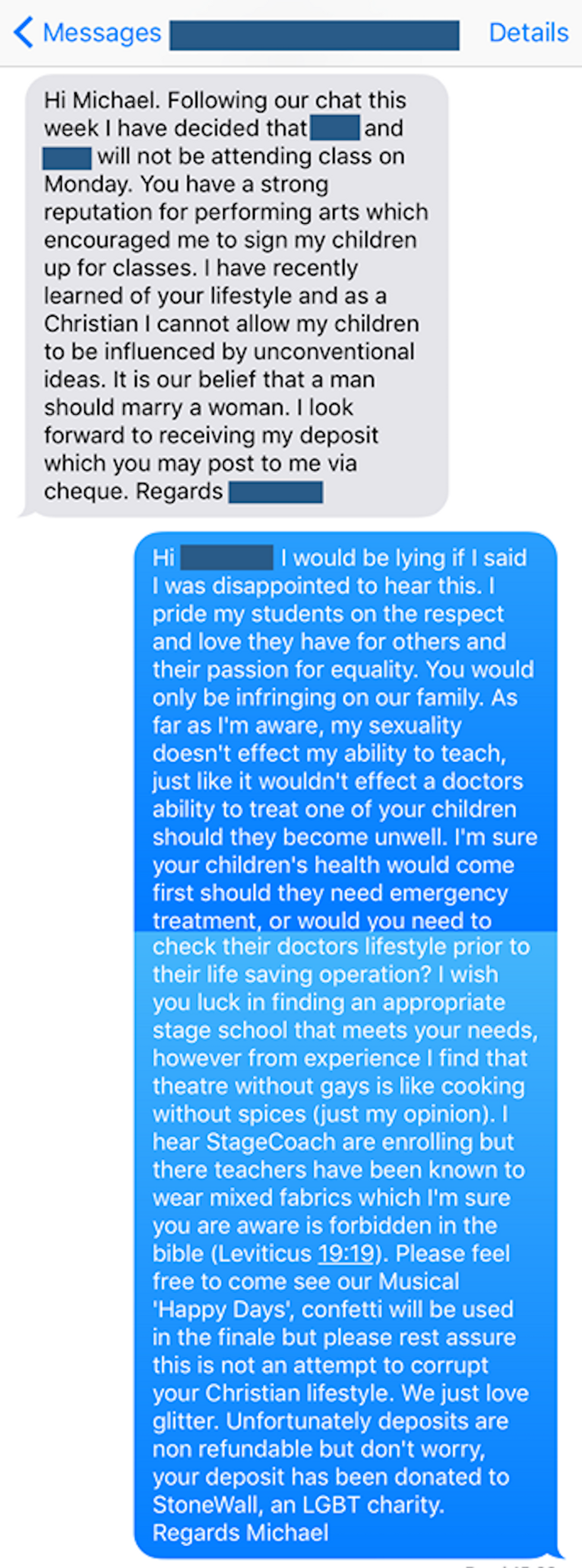A drama teacher had the most polite “screw you” response to the mom who stopped her kids from taking classes with him upon discovering that he was gay. Michael Neri is a drama teacher from Kidderminster, England. He runs Talking Props Theatre School, a performing arts school for children ages 8 to 13.