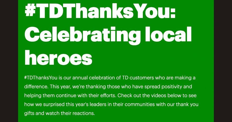 To learn more about this year's #TDThanksYou heroes, visit https://www.td.com/us/en/about-us/customers/humans-with-heart