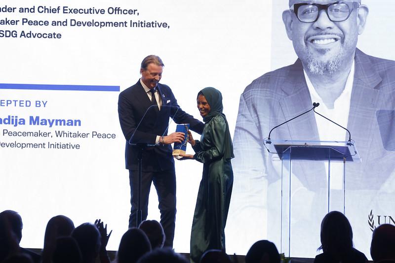 Whitaker walks the walk— and it showed when the spotlight was put on Khadija Mayman, Youth Peacemaker for the Whitaker Peace & Development Initiative, who accepted the award on his behalf. What better way to change the world, than to start by healing our children and letting them lead?