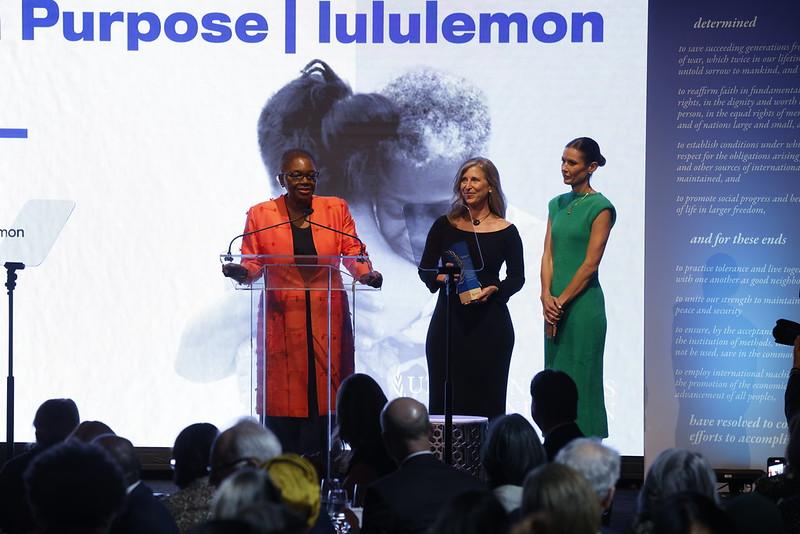 The award was accepted by two of lululemon’s leaders: Esther Speck, Senior Vice President of Sustainable Business & Impact, and Nikki Neuburger, Chief Brand Officer. Speck is widely respected among her colleagues as one of the most result-oriented professionals in sustainability. She managed to bridge lululemon and the UN Foundation seamlessly by recognizing that lululemon focuses on offering their customers a path to wellbeing, which entails supporting humanitarian and sustainable causes.
