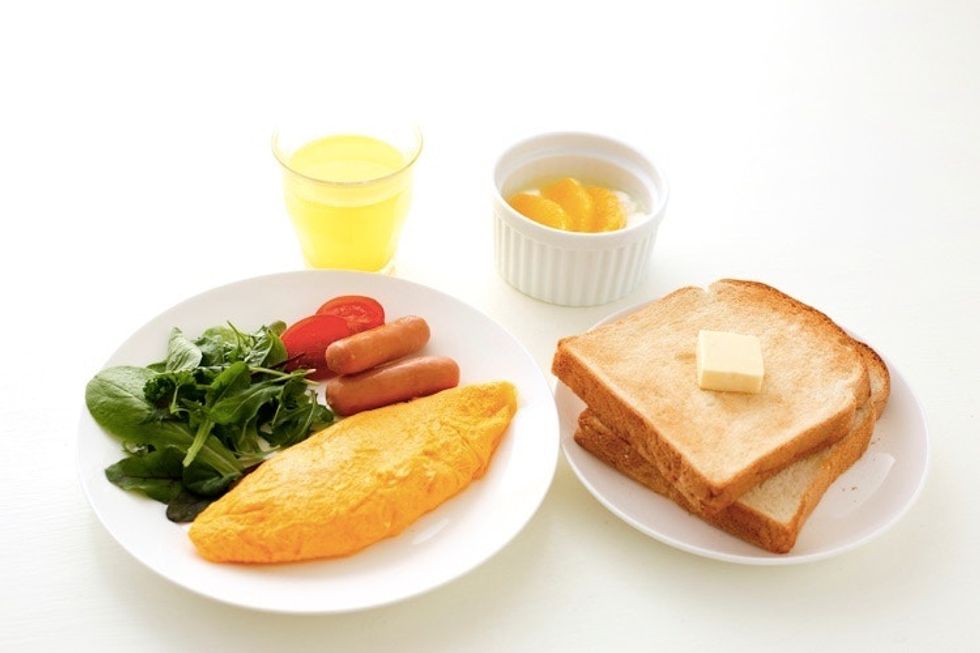 Also known as three parts of a balanced Upworthy breakfast. (Obviously, the omelette is feminism, the spinach salad is acceptance, and the butter is love.) Photo via iStock.