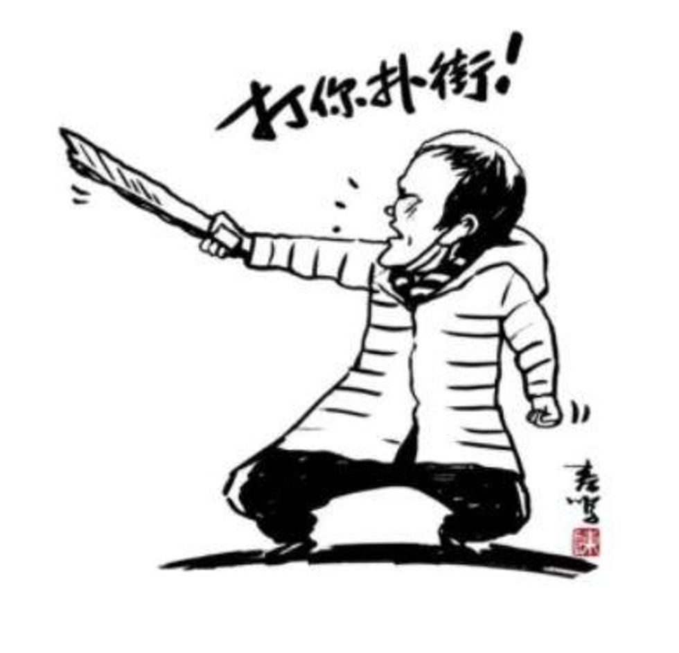 A cartoon of her courageously wielding a stick by a Chinese artist has gone viral and spread across the world.