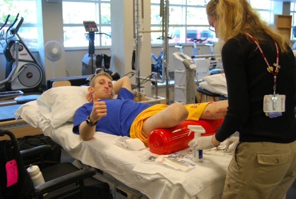 After a month of debridement surgeries every other day and another few months of recovery in the hospital, he was finally able to start the long process of rehabilitation.