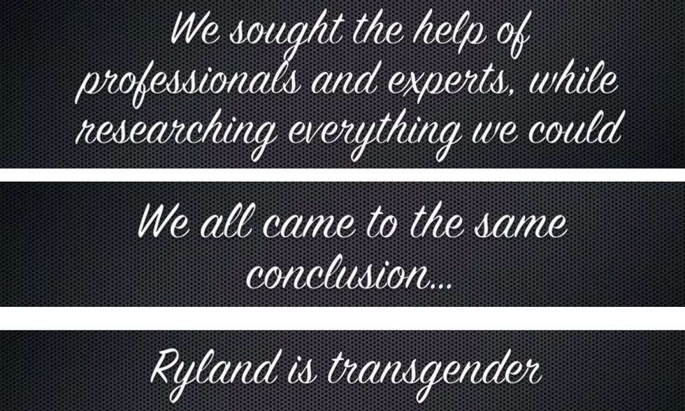 Jeff and Hillary reached out for help from professionals, learned everything they could, and came to the only conclusion that existed: Their child was transgender. Ryland was born with female anatomy, but Ryland's brain identifies as male.