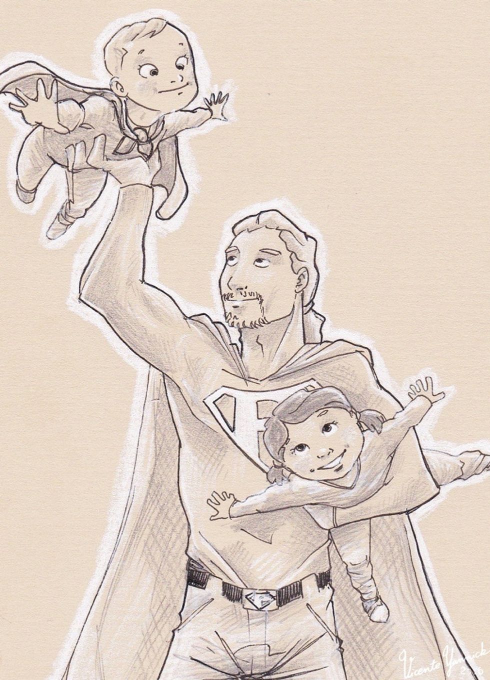 To their kids, dads have amazing superpowers. All illustrations are originals from Yannick Vicente and used with permission.