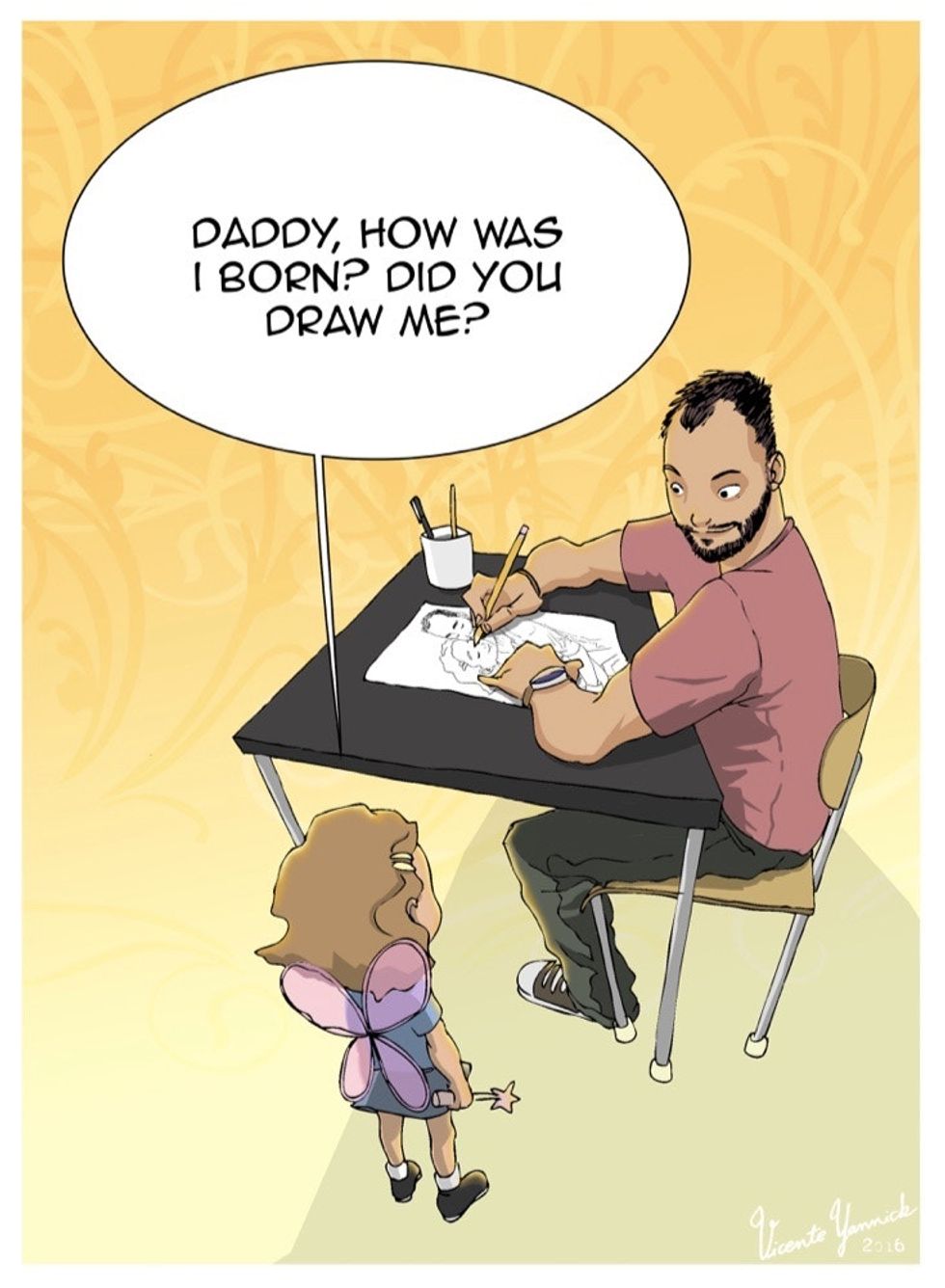 As a single dad, Vicente became passionate about fathers raising their kids, so he used his skills as an illustrator to show the dad-child bond.