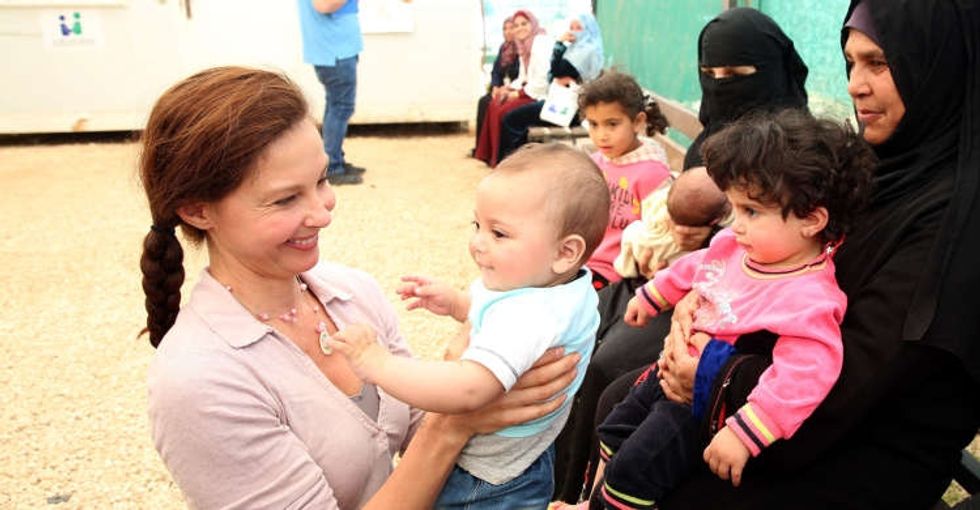 Actor and UN Goodwill Ambassador Ashley Judd visits a refugee camp in Jordan. Photo by Khalil Mazraawi/Getty Images.