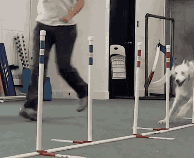 She weaves through poles.