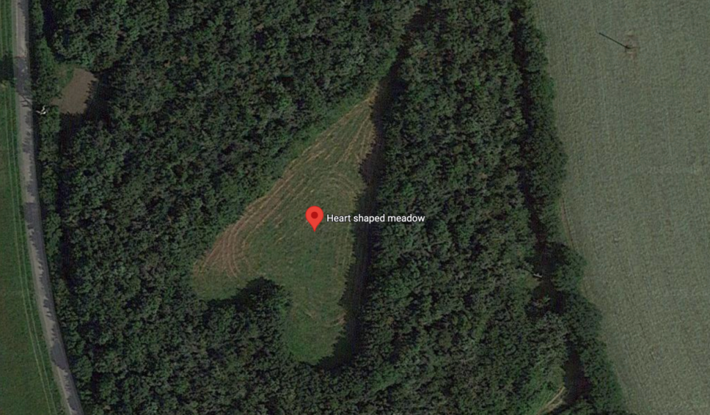 The heart-shaped meadow only viewable from above. Photo credit: Google Maps