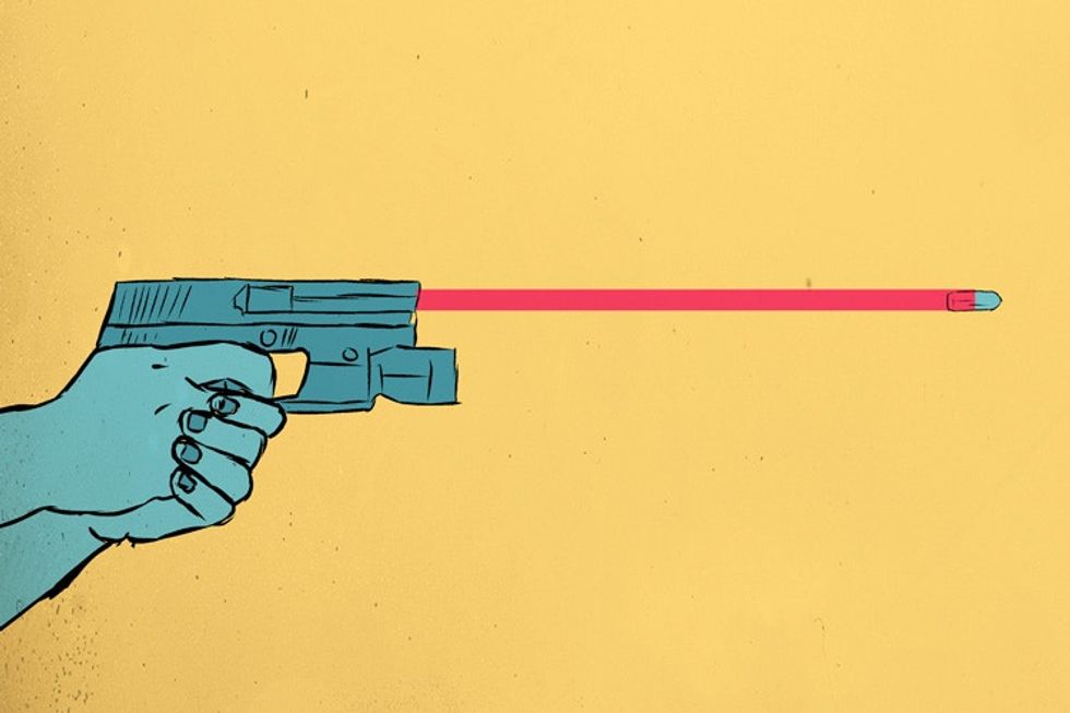 At one point during my test, one of the range instructors saw me struggling to steady the .38 revolver in my hands, possibly because I had never held an actual gun in my hands before that morning. (And also I wasn’t on my Adderall because it’s illegal to operate firearms while under the influence of any kind of medication.) He walked over to me while I was reloading and offered some friendly advice. "Focus on the sight, not the target," he said. "Don’t pull the trigger, squeeze. Just breathe, relax, and keep it steady."
