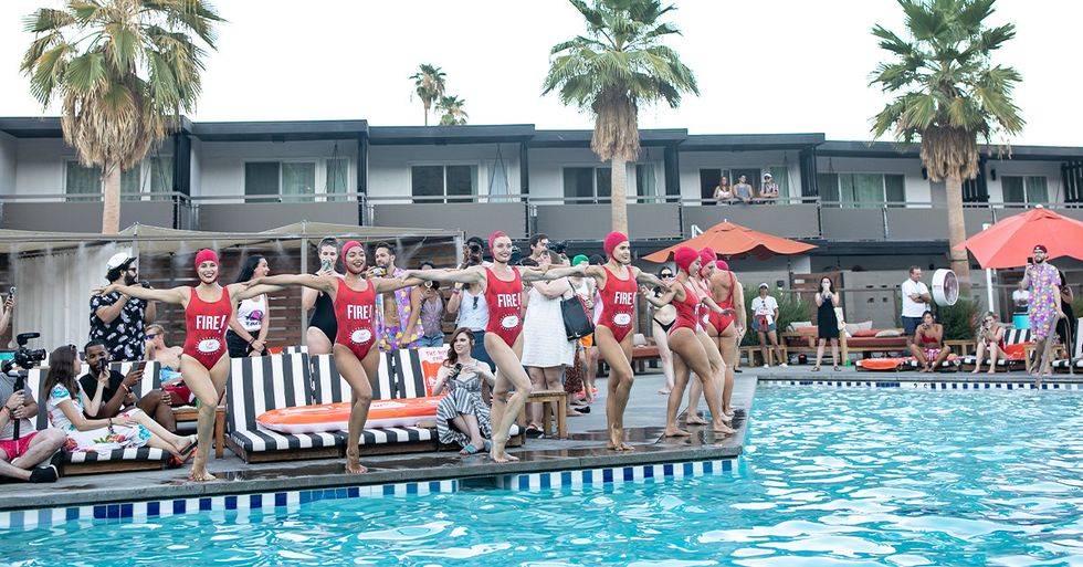 And I wish these writers could be here to paint you these landscapes, but what you've got is me, a literal Taco Bell super-fan, and what I'm doing is eating and getting sunburned and taking a synchronized swimming class with the Aqualillies, who refer to themselves as "the world's most glamorous water ballet entertainment," but have very little idea of what to do with 10 eager recruits who can't stay afloat or on beat.