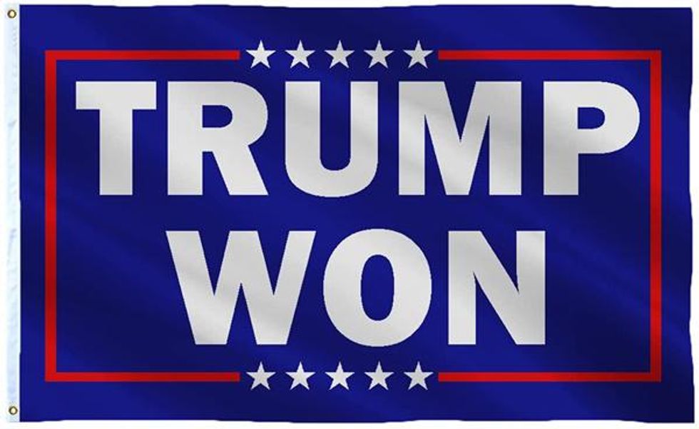 There are also the big-ass Trump flags that either say, "Trump 2020," "Trump 2024" or "Trump Won."