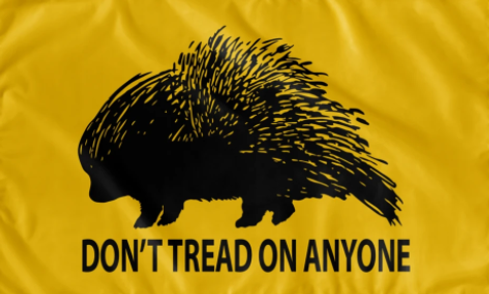 Some Libertarians are moving away from the "Don't Tread on Me" flag for the more inclusive, peace-loving "Don't Tread on Anyone" flag. Because a true Libertarian believes in everyone's personal freedom.