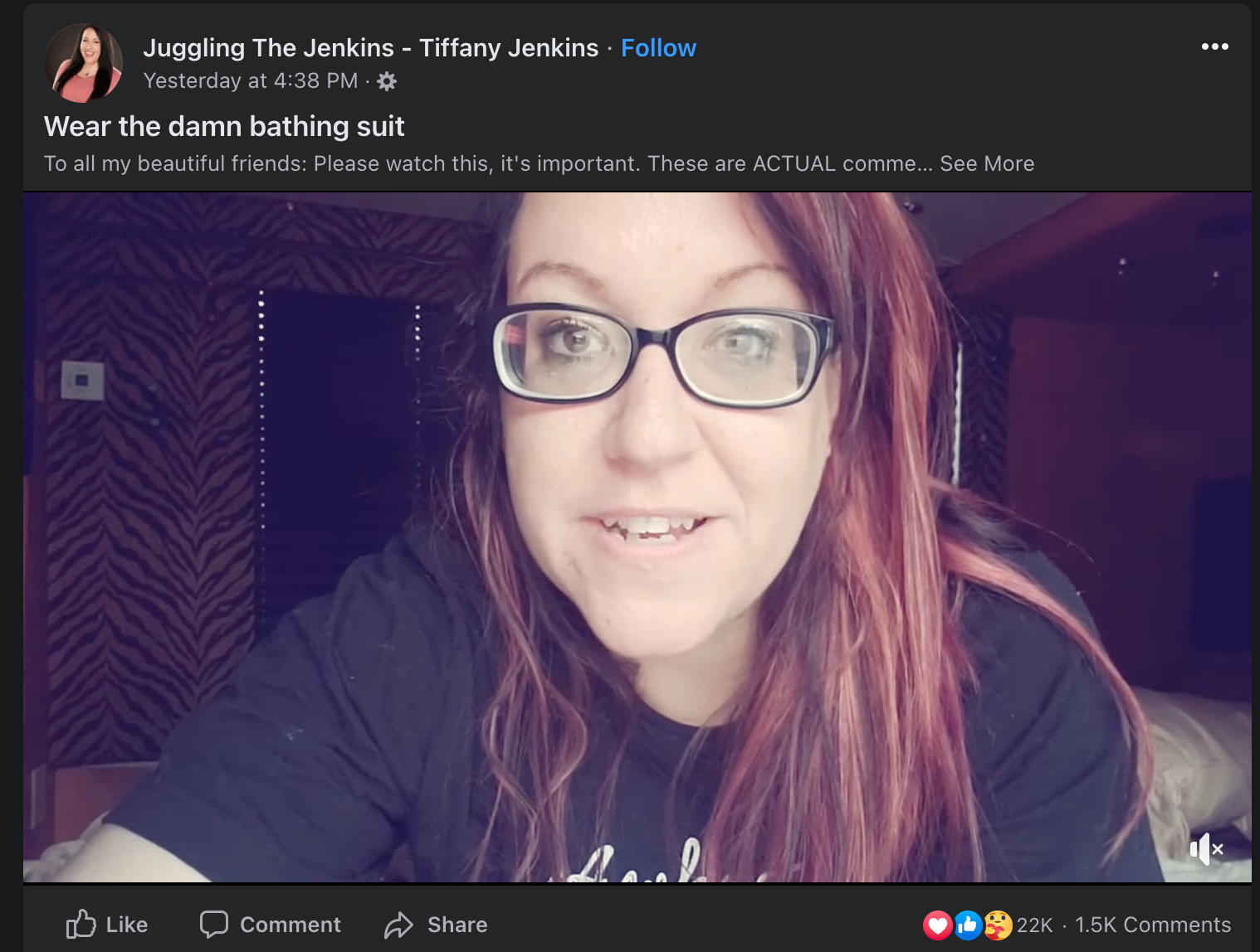 Jenkins summed up the lesson perfectly. “Friends, people are always going to find something negative to say. So put on that damn bathing suit and get out in the sun and live your best life. Eff everybody.”