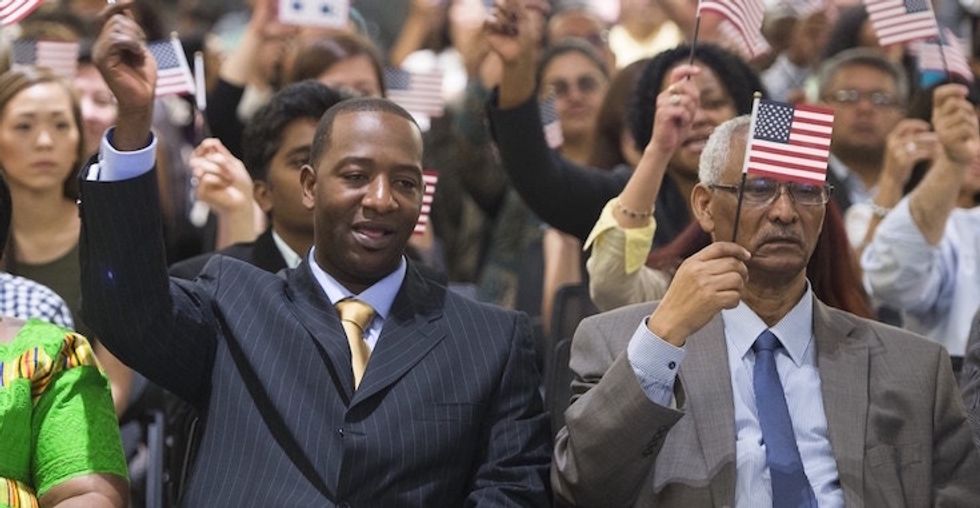Similar to how gun-owners often stockpile weapons and ammunition following a gun-related tragedy — because they're worried gun safety legislation will make guns and ammo harder to buy — Trump's political ascension and his promise to enlist a "deportation force" to exile some 11 million undocumented immigrants has led to an unlikely but significant increase in the number of immigrants applying for citizenship here in the United States.