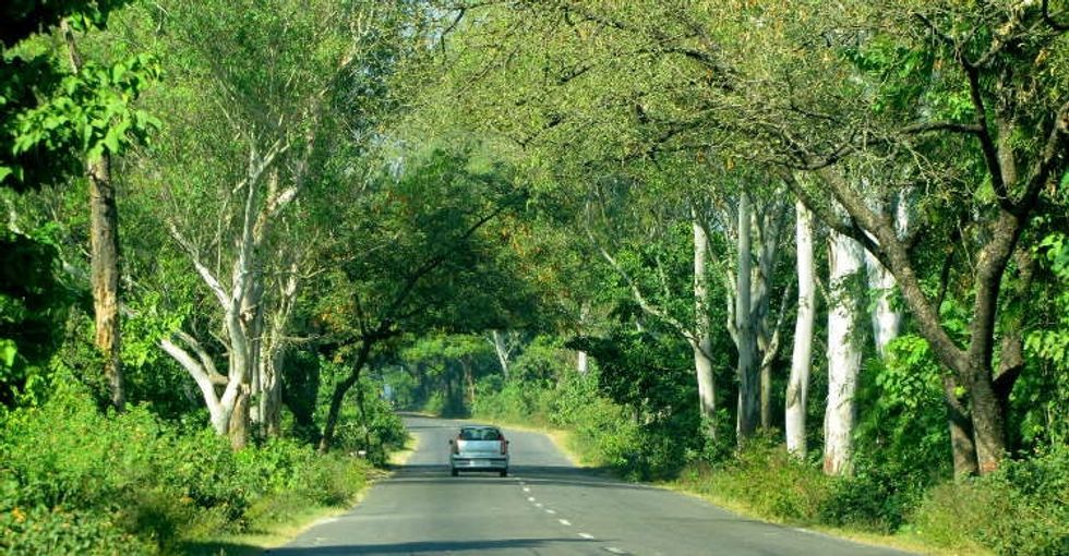 Trees line a highway in Uttarakhand, India. Photo by Paul Hamilton/Flickr.