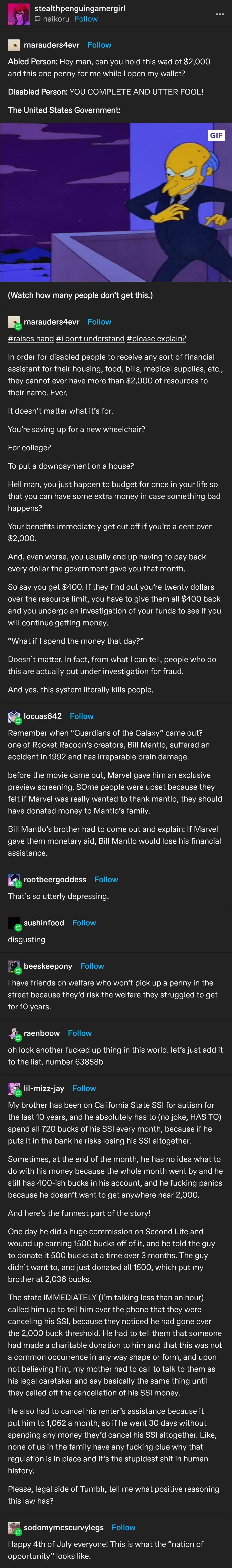 An eye-opening Tumblr thread posted to Reddit shows how federal Supplemental Security Income (SSI) programs designed to help disabled people actually help keep them in poverty.