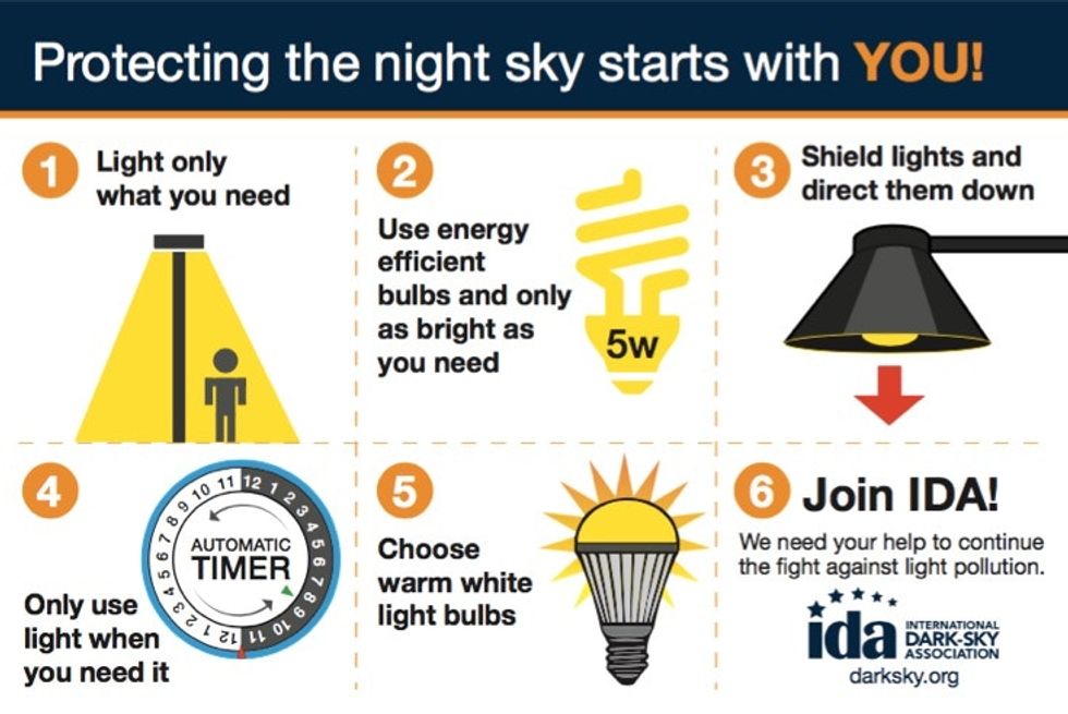 "That's the first thing people can do is look around their homes to make sure their lights are dark-sky friendly," Bishop said. "One of the most important things is to make sure [lights] are fully shielded because a lot of lighting and a lot of security lighting ... it's not going down on the ground, where it's actually needed; it's going up in the sky, which serves no purpose and just wastes energy."